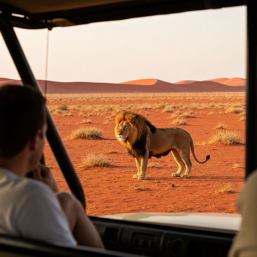 Track lions, cheetahs, and leopards across the red Kalahari dunes with expert guides. Early morning and late afternoon drives.